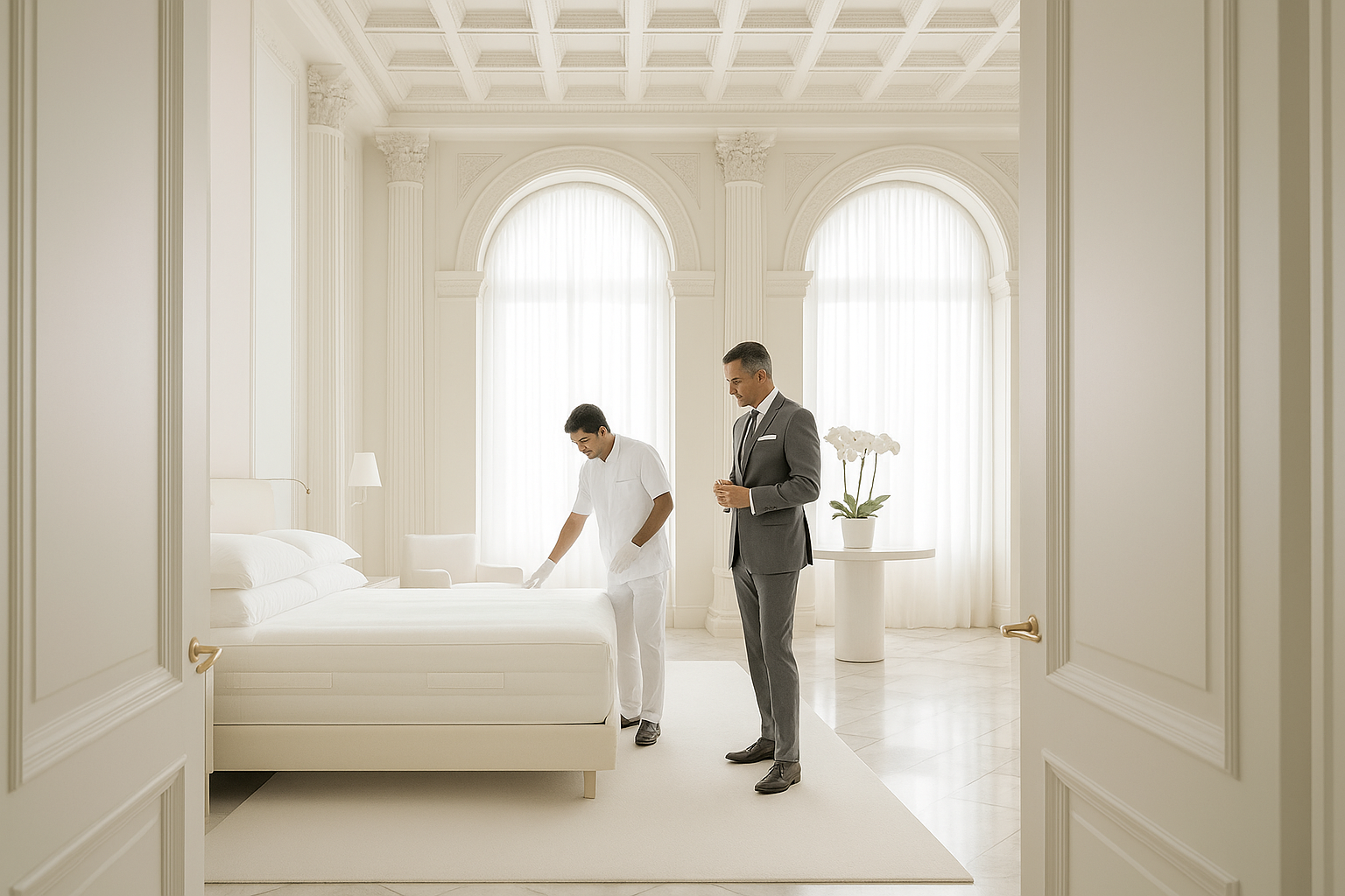 Intégré dans la continuité du housekeeping, notre protocole élève la pureté des fibres et de l’air intérieur au rang de nouveau critère d’excellence hôtelière.