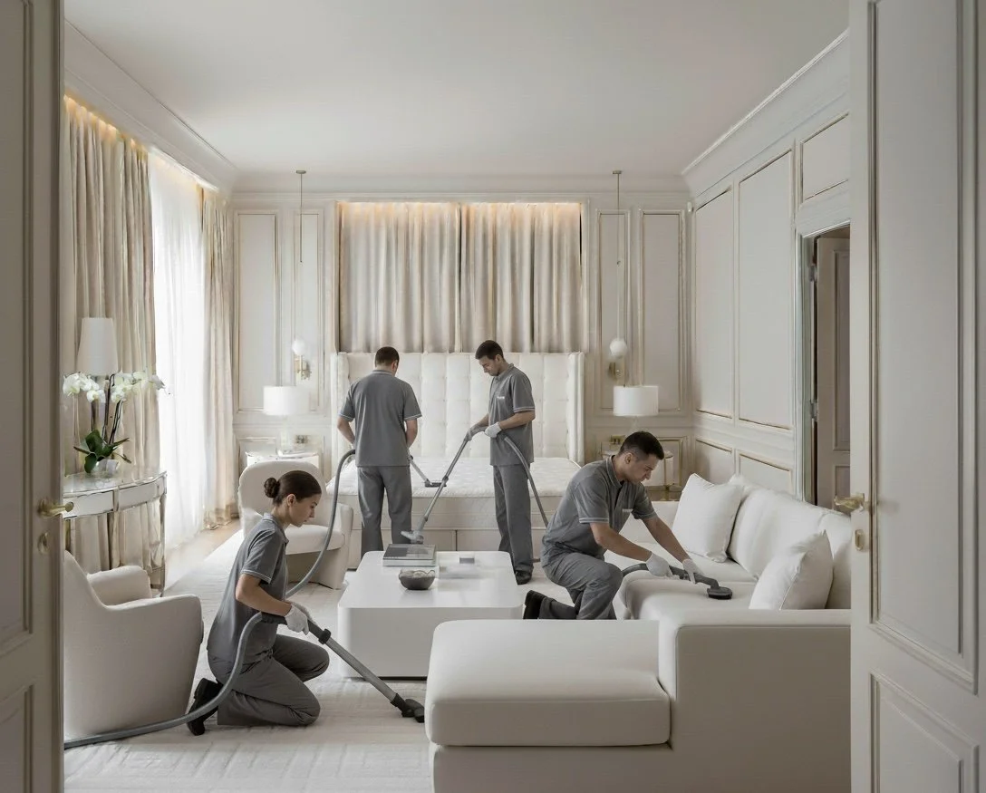Grace à notre protocole, éco-responsable et non chimique, vos suites retrouvent une pureté sanitaire mesurable, sans humidité, sans altération des tissus, et sans interruption d’exploitation.